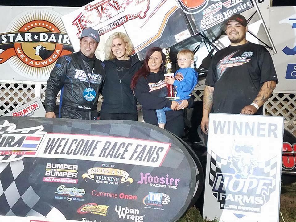 Thone Motorsports always presents a professional appearance and has proven they have the performance to match. Mike Kertscher earned the team their first victory in IRA Sprints competition over the weekend. 27 teams pulled into the Oshkosh Speedzone for the Bullring Showdown. Lap traffic would pay off for the Thone team as Kertscher maneuvered his EAGLE through lapped traffic better than anyone and was able to sneak around the two leading cars to bring home the first ever victory for the Thone Motorsports Team.