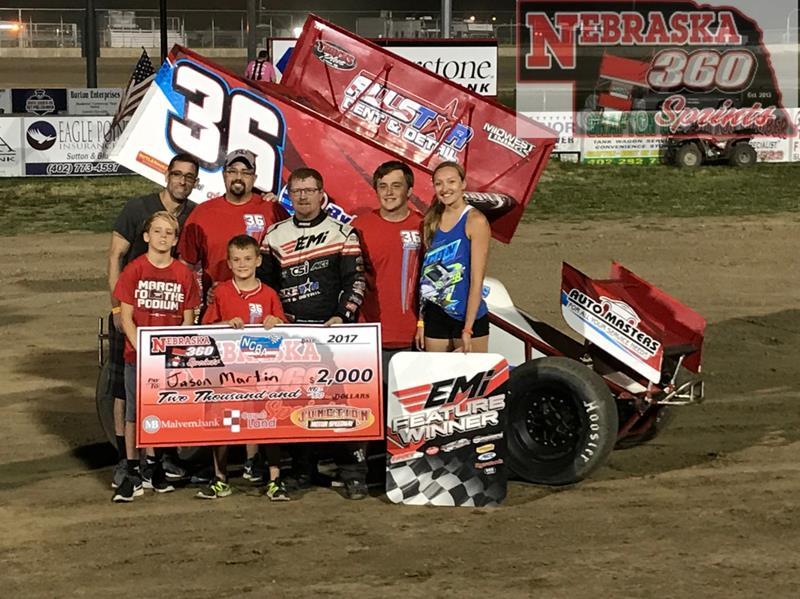 The Nebraska 360 Sprint Series invaded Junction Motor Speedway to try a hand at the new 3/8 mile track size. It was an all EMi podium with Jason Martin claiming the inaugural victory in his SCHNEE chassis. Starting in the fifth position, Jason used lap five to his advantage passing fellow EMi driver, Ryan Roberts, for the lead. Martin maneuvered through lap traffic and was able to hold on and take the win. Ryan Roberts finished 2nd in his EAGLE followed by Don Droud Jr. in a SCHNEE.